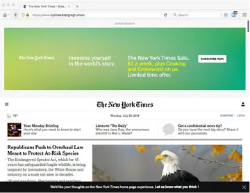 Publications as big as The New York Times and applications as well known as Facebook both have onion services. These allow for even more privacy and security by obscuring the destination of a request as well as the point of origin. As Runa Sandvik, Director of Information Security at The New York Times, explains in a Medium post, onion services and the Tor browser assure that their website can be reached “without monitors or blocks” and “ they provide additional guarantees that readers are connected securely to [their] website.”