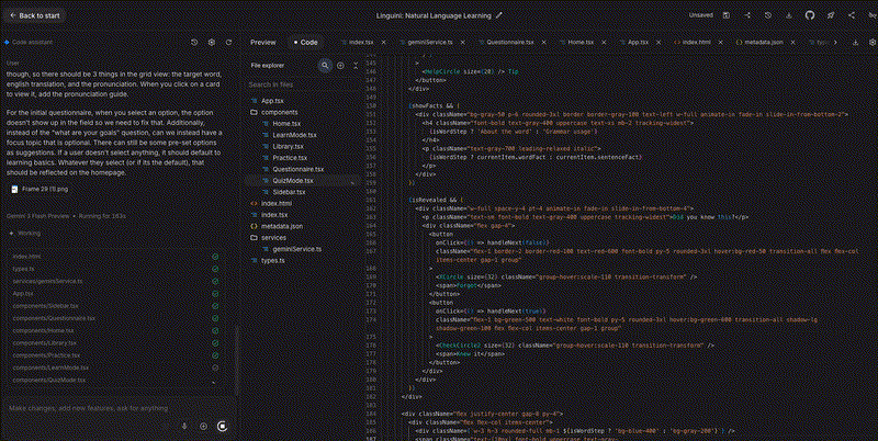 We went with Google AI Studio because we had credits, the app it produced was closer to our end goal, and its code organization was far more intuitive than Replit. This was crucial since we knew we'd need to make smaller, more specific code edits rather than just vibe-coding our way through.