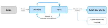 Aside from what information should be highlighted to the user, playing around on the working prototype uncovered a lot of new questions particularly around how users cycle through vocabulary: