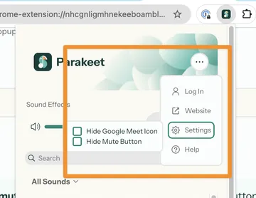 Parakeet is both a digital soundboard website, where you can upload and organize sounds, and a Chrome extension, specifically tailored for Google Meet, to play sound effects in virtual meetings.