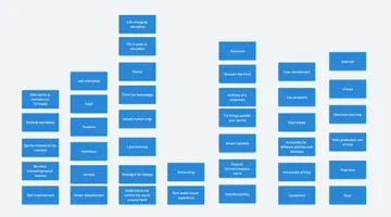 We then grouped them into like categories, until we had seven columns of cards referring to things like "political weirdness," "understand and control the world around them," and "low pressure."