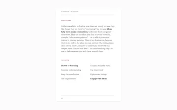 The Collector — A person who enjoys "collecting" as much information as they can, and using that information to weave complex "information tapestries" that help explain the world around them.