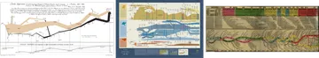 For inspiration, we looked beyond traditional UX journey mapping templates to the world of data visualization. One particular inspiration was Charles Joseph Minard’s Carte Figurative depicting Napoleon’s 1812 Russia campaign, which combines six different types of data into a single visual hybrid. Ultimately, our approach was dictated by the shape of the data itself, and our data analysis took place hand-in-hand with our visual explorations.