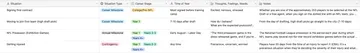 After collecting our data, we had to make sense of it. We used Airtable to connect interview quotes and insights to specific situations, and we developed a taxonomy of situation types. For example, some situations recur every year on a predictable schedule, others are milestones that happen just once or twice in a career, and a third type are “contingencies” that can happen at any time, like getting injured to moving to a new city. We also grouped situations by career stage. Some situations are only relevant to rookies, or free agents, or veteran players after their third accrued season, for example.