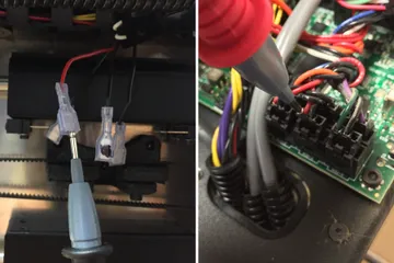 I was confident our problem was with the wiring. To validate I opened the case and grabbed a multimeter. Use Lulzbot’s open source assembly guide (step #9) to help position your multimeter on the Rambo board. Check for continuity on both red and black wires. Our red wire no longer had continuity.
