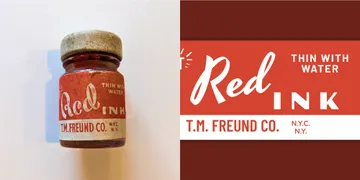I found this little bottle of dried-up ink behind a wall when renovating a guest bedroom. My guess is that the original construction crew used it to mark the walls and studs, but who knows? It could have been an art supply that somehow got lost after the house was built. I tried looking up the company T.M. Freund Co. in NYC, but I couldn't find any info.