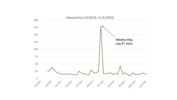 - During the week of July 5, 2015, Alexandria had a high of 180.4. I wonder what celebration happened that week that might have caused the monitor to detect such a high number? (Below)