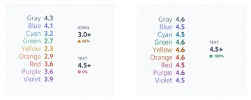 We also need to be able to explain what accessibility doesn’t mean. A common misconception is that making a website accessible will mean sacrificing the design or “feel” of it. Stripe, a popular payment processing company, wrote a thorough post about how they updated their color system to keep its vibrancy, but make it accessible. In the screenshot below, you can see Stripe's colors before and after the update.