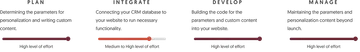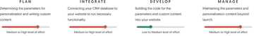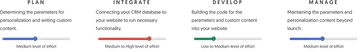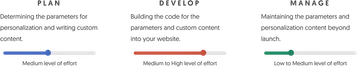 Because each customer’s experience is unique, this type of personalization requires an exceptionally high level of effort to implement and manage. It requires a CRM integration, which could require a high level of effort to implement on its own, and then a high level of effort to also implement the personalization on top of the CRM work.