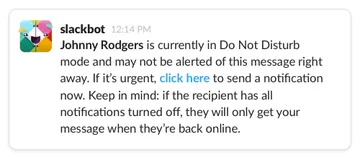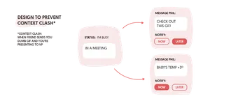 So how can technology mind context? Notifications may never be able to discern context intelligently, because context goes way beyond your location to your activity, intent, and priority. The answer may instead be to provide better tools to senders and recipients of messages to help facilitate conflicts of context. Slack’s Do Not Disturb feature is a great example of a smarter notification tool; not only can people provide a status and set hours for Do No Disturb, but their coworkers can see that status, and flag a message as urgent and trigger a notification anyway. By giving both parties agency and relevant information, this feature uses people’s ability to interpret urgency and context so that technology doesn’t have to.