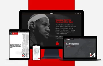 Becoming the Greatest. When you’re ESPN, and LeBron James becomes one of the Top 10 points leaders in NBA history, you’re going to have something to say about it. To mark the event, we collaborated with ESPN’s editorial team to design something unique. We knew we needed to capture the drama of the accomplishment while highlighting the stats that underscore its significance. The interactive experience we created lets fans track LeBron’s journey from draft day to present day, and offers some predictions about what it will take to become the greatest basketball player ever.